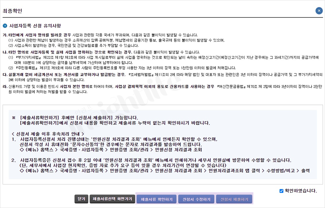 개인 사업자등록 신청