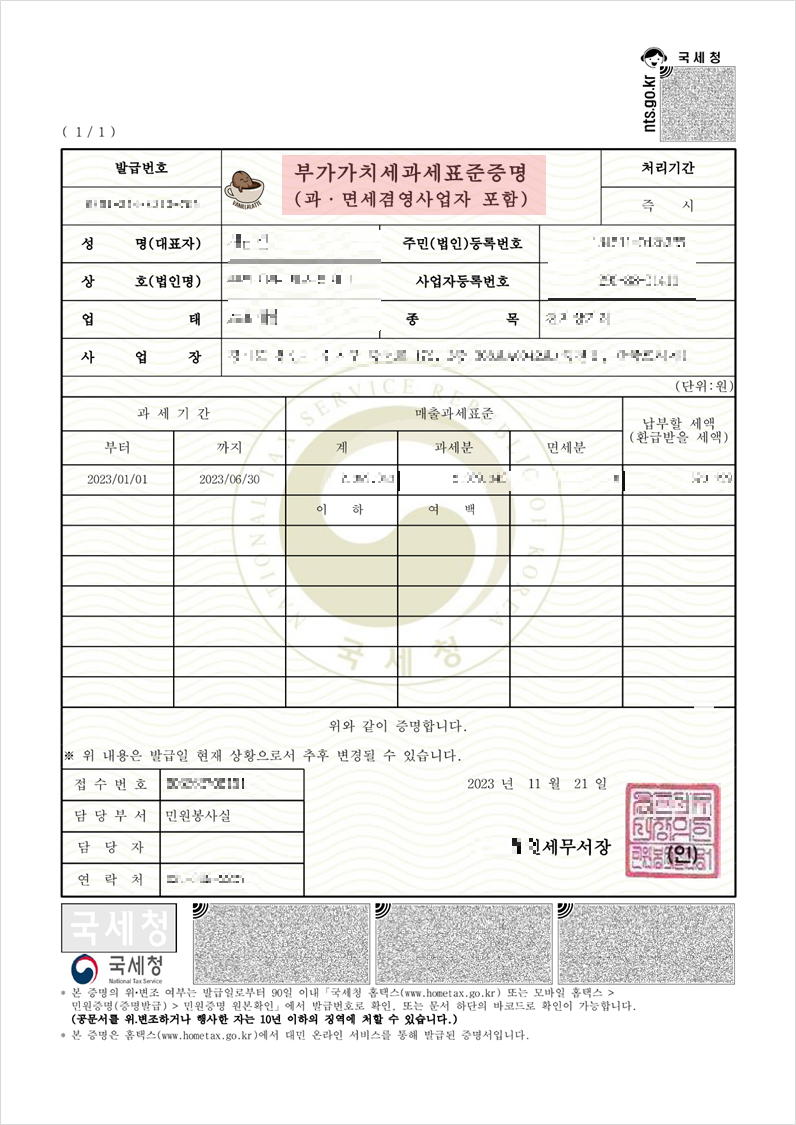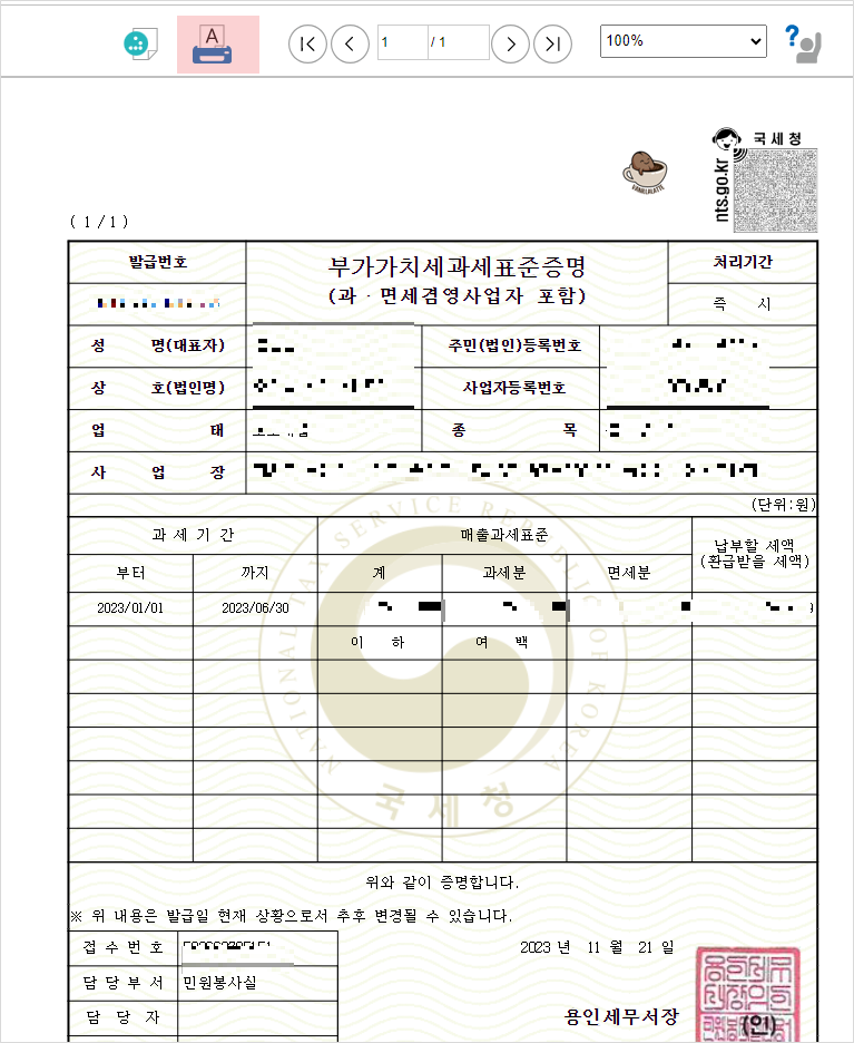 부가세과세표준증명원 발급은 홈택스에서 무료로 빠르게 발급받을 수 있습니다.